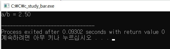 위와 같은 코드의 경우 c가 double형이지만 a/b는 int형으로 계산되기 때문에 값이 2.5가 아니라 2가 저장된다.