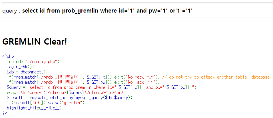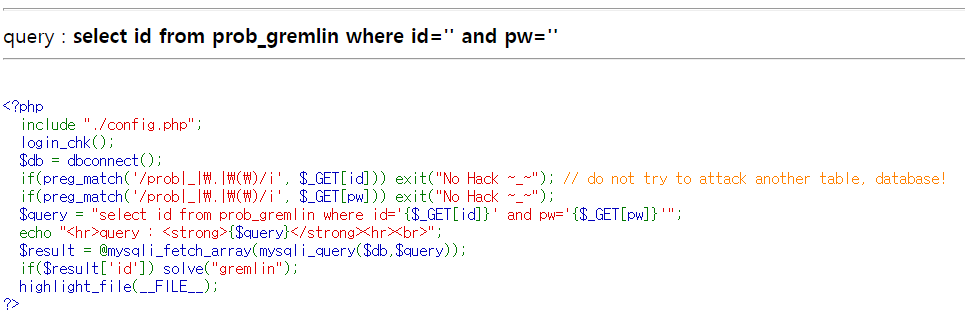 gremlin을 들어가면 다음과 같은 문제가 나온다. php에서 변수를 조작하려면 ? 뒤에 id=1같은 방식으로 입력하면 된다.