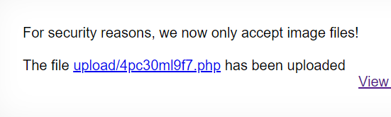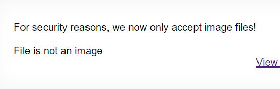 저번문제와 비슷하게 파일을 올릴 수 있다. 이번에는 txt파일을 올려도 File is not an image라는 문구가 뜨며 업로드 되지 않는다.