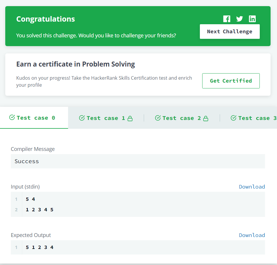 input으로 배열의 크기, rotation 수, 배열을 입력받는다.
