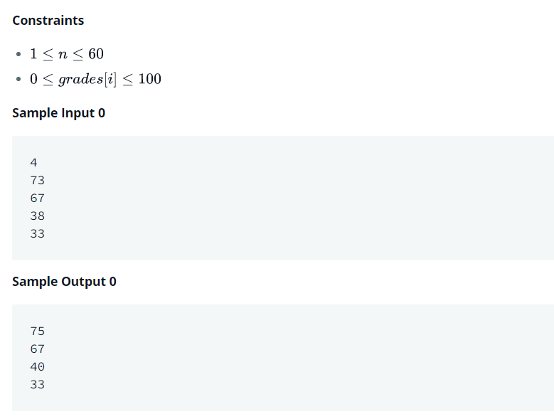 int* gradingStudents(int grades_count, int* grades, int* result_count) {