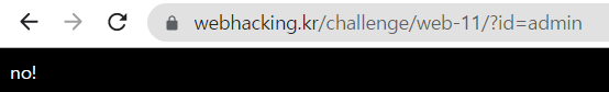 id=admin을 그대로 보내면 당연히 no!가 뜨고,