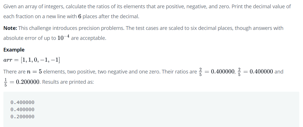 void plusMinus(int arr_count, int* arr) {