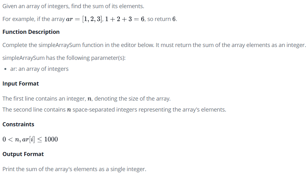 int simpleArraySum(int ar_count, int* ar) {