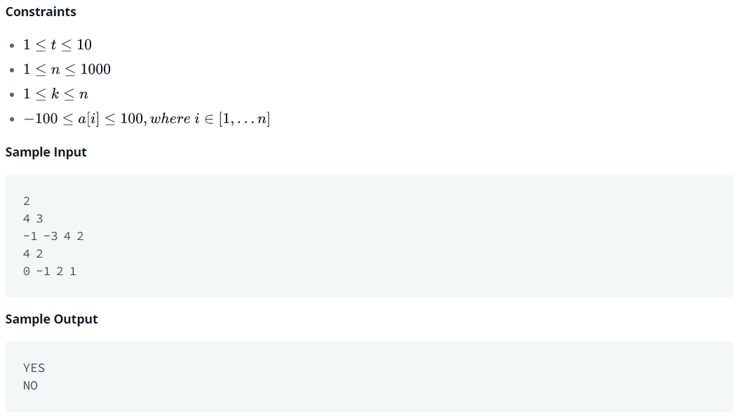 if(ck < k) s = "YES";