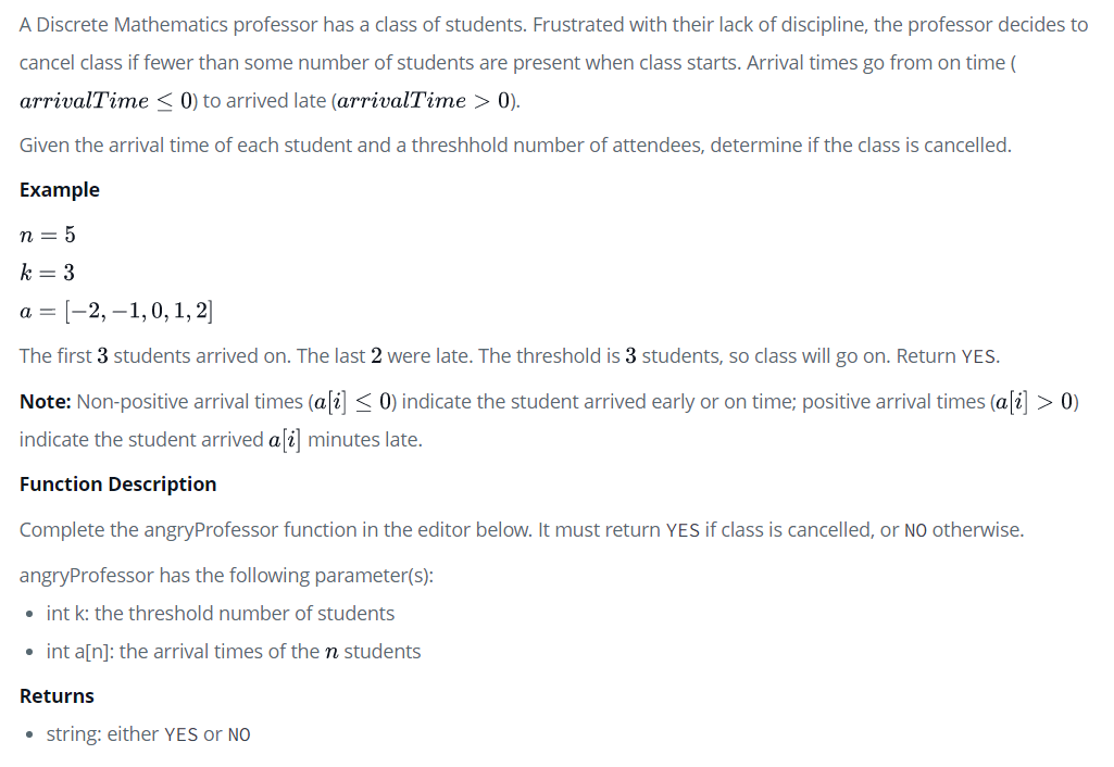 char* angryProfessor(int k, int a_count, int* a) {