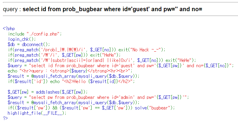 url = "https://los.rubiya.kr/chall/bugbear_19ebf8c8106a5323825b5dfa1b07ac1f.php"