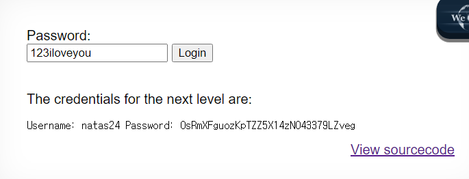 echo "<pre>Username: natas24 Password: <censored></pre>";