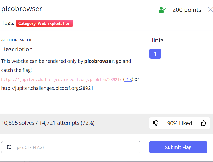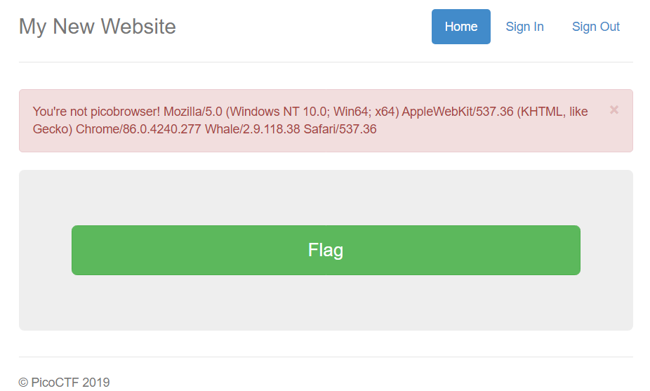 picobrowser가 아니라고 flag를 보여주지 않고있다.