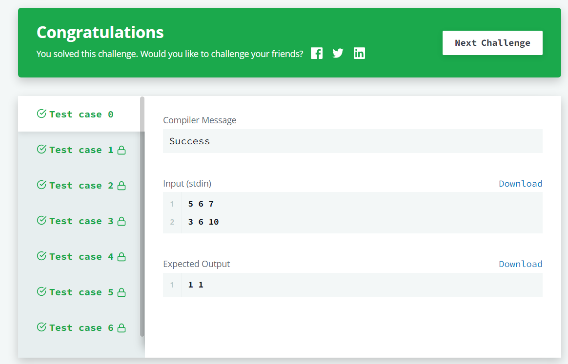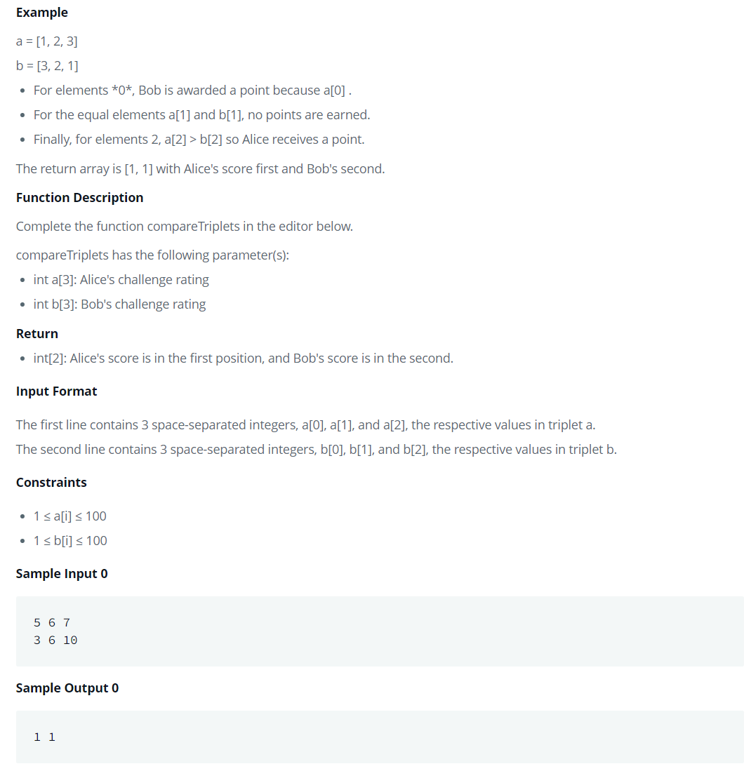 int* compareTriplets(int a_count, int* a, int b_count, int* b, int* result_count) {