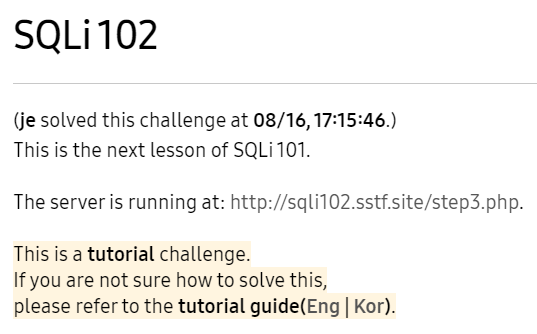| [SSTF 2021] SQLi 101 (Hacker's Playground) (0) | 2021.08.19 |