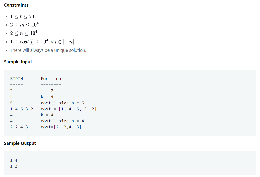 int* icecreamParlor(int m, int arr_count, int* arr, int* result_count) {