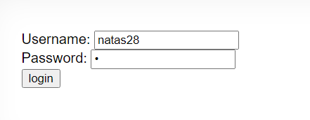 위와 같이 natas28 + 공백 + 1을 username에 넣고 password에는 1을 넣었다.