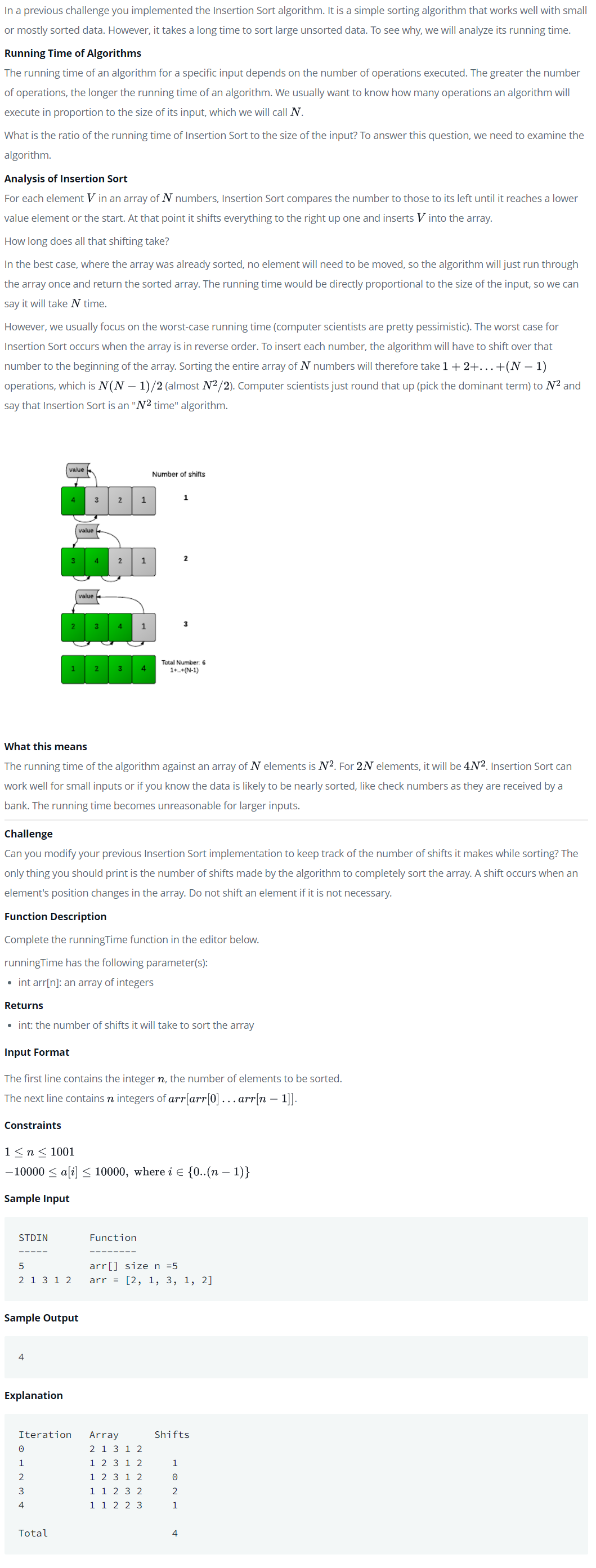 insertion sort로 정렬되는 동안 값이 자리가 몇 번 바뀌었는지 세는 문제다.