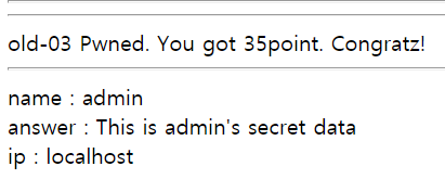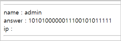 아무거나 입력하고 submit을 누르니 name과 answer, ip가 차례대로 나타났다.