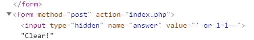 answer에 ' or 1=1--을 넣고 제출하면 query error!가 뜬다.