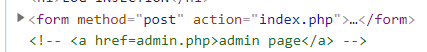 처음 페이지로 돌아가 소스코드를 확인해보면 admin page가 있다는 것을 알 수 있다.