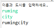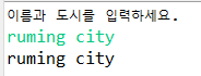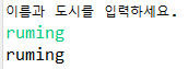 여기서 엔터로 입력받지 않고 공백으로 이름과 도시를 입력받으면 어떻게 될까?