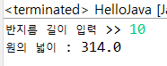 System.out.println("원의 넓이 : " + circle); //원의 넓이 출력