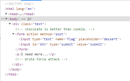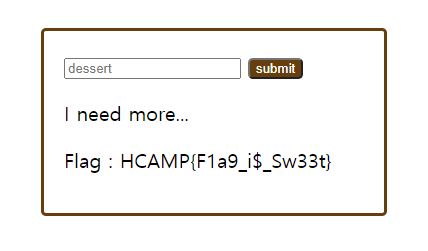 input에 candy를 치고 submit을 누르면 I need more...라는 문구가 나옵니다.