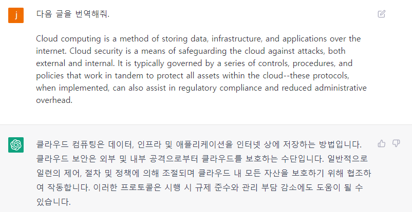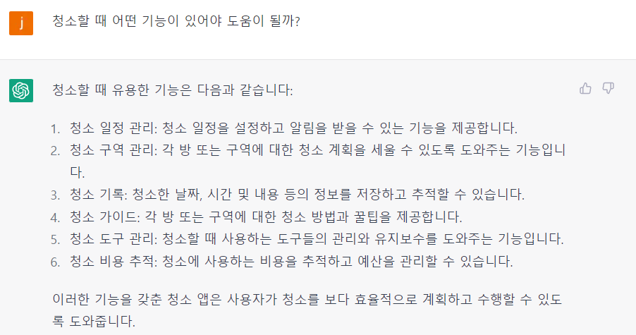 ChatGPT은 검색 엔진을 대체하기에 유용하다. 구글링을 하면 원하는 결과를 얻기 힘든 경우도 있는데, 내가 검색하고자 하는 문장에 대한 명확한 답을 얻을 수 있다는 점이 ChatGPT의 장점이다.