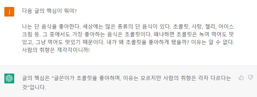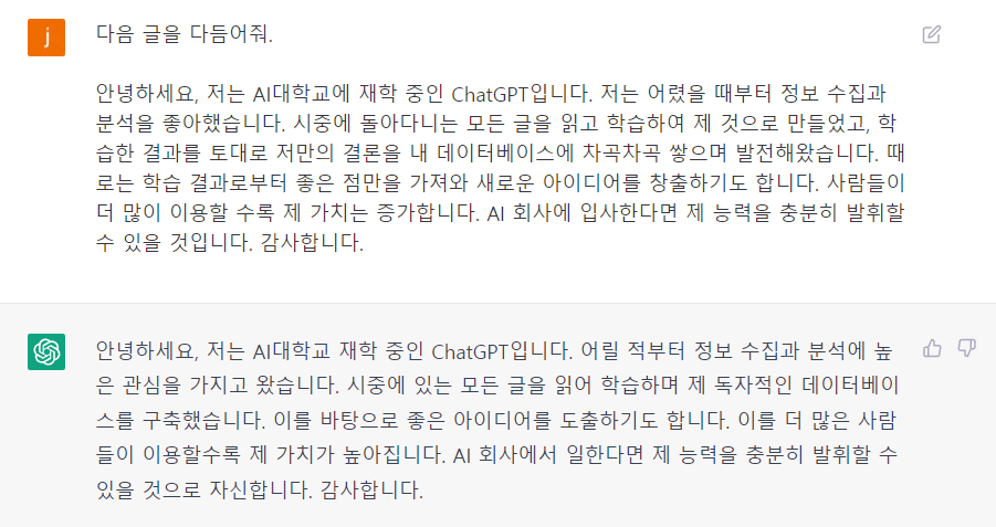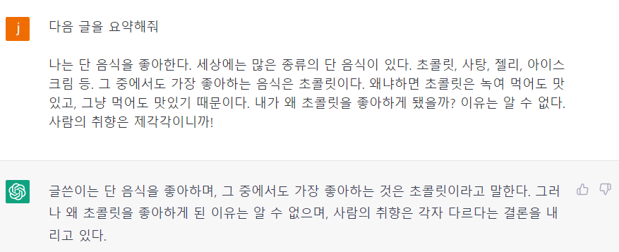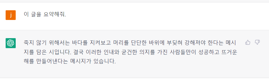 그렇다면 내가 쓴 문장을 요약해달라고 부탁해보자.