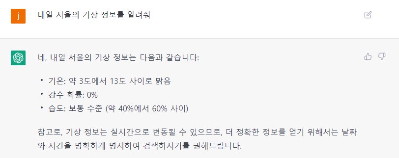 내일 날씨도 물어볼 수 있다. 시리나 빅스비처럼 사용하는 것도 재밌다.