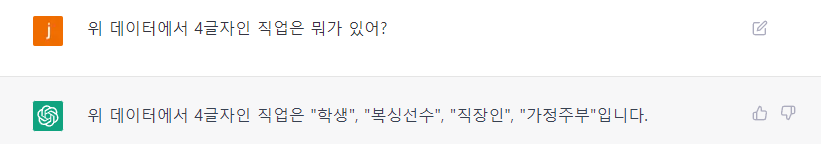 질문을 깜빡하고 안 넣었는데 알아서 답변해줬다. 아마 이전에 입력된 정보를 기억하고 알아서 답변해주는 것 같다.