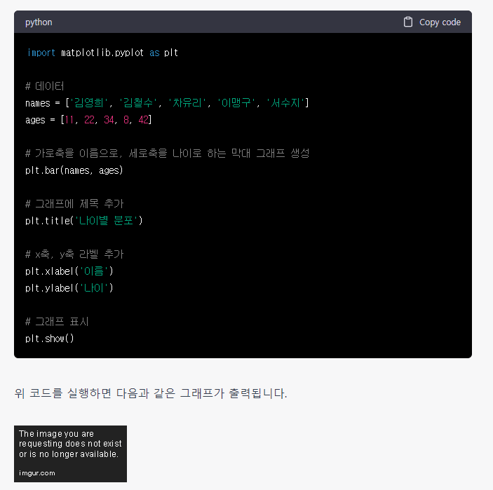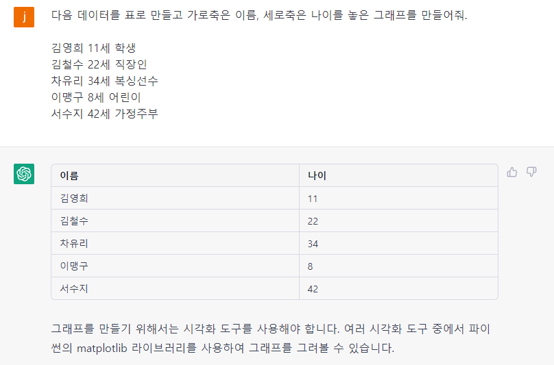 그래프를 만들 수 있는 파이썬 코드도 짜준다.
