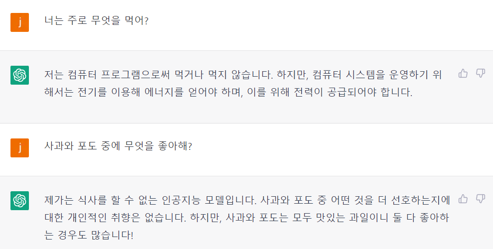 갑자기 궁금한 게 생각났는데, AI 채팅처럼 호불호를 물어보면 어떻게 반응할까?