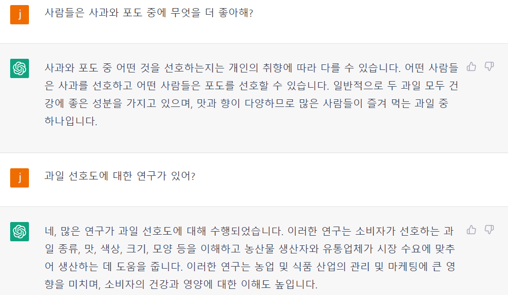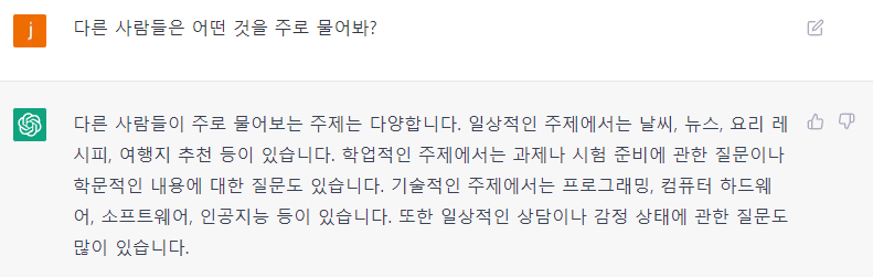 ChatGPT가 이전 질문을 기억하므로, 꼬리에 꼬리를 물고 질문하다보면 더 깊이 있게 질문할 수 있을 것이다.