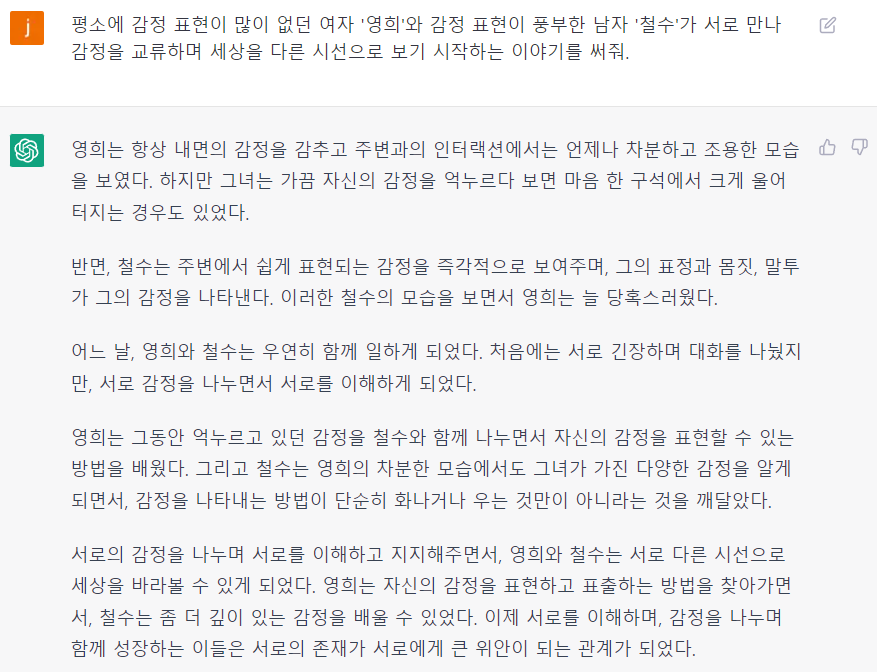 오... 좀 치네 AIㅋㅋ 내용은 뻔하긴 한데 만들어주는 게 신기하다.