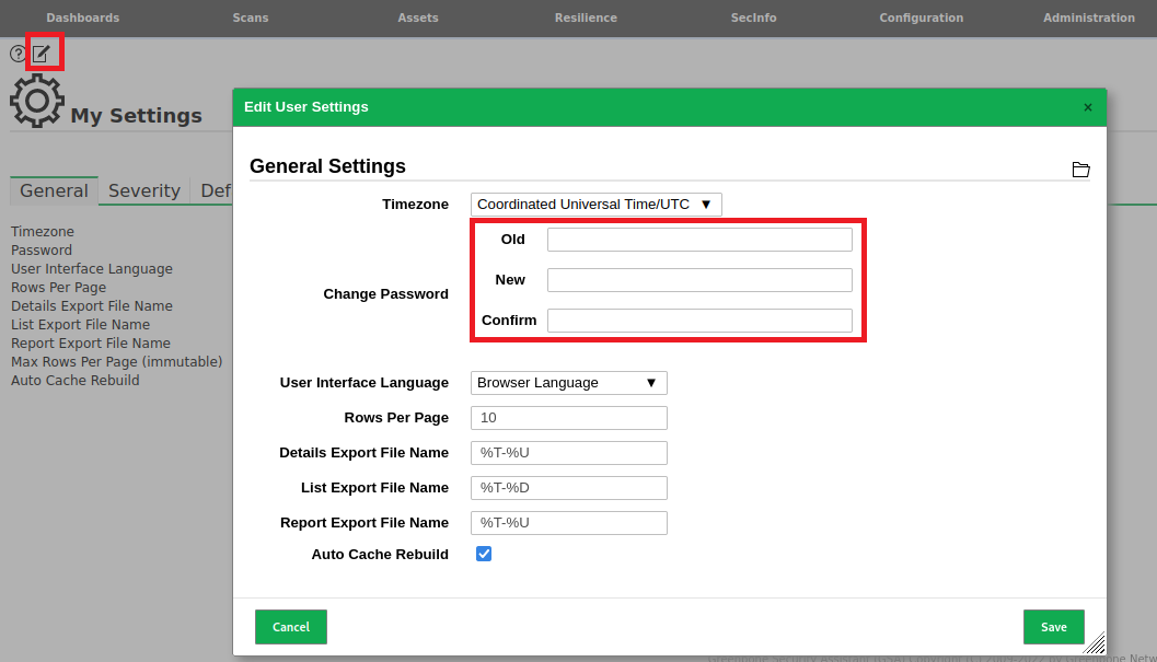 좌측 상단의 수정 버튼을 누르면 Edit User Settings 창이 뜨는데, 원래 비밀번호를 입력하고 새 비밀번호를 2번 입력하면 된다.