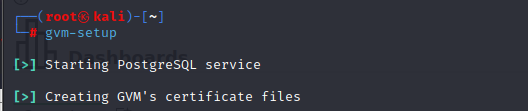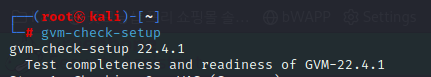 셋업 과정이 오래 걸린다. 퍼센트가 안 올라가길래 Ctrl+C로 중지시켰더니 나중에 실행시킬 때 오류가 났다. 30분~1시간 정도 걸린 것 같은데, 중간에 중지시키면 다시 setup을 실행해도 나중에 gvm을 시작시킬 때 오류가 나는 것 같으니 되도록 한번에 설치하자.
