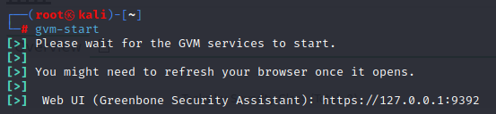 칼리 내 웹에서 https://127.0.0.1:9392로 들어가면 gvm 화면이 나온다.