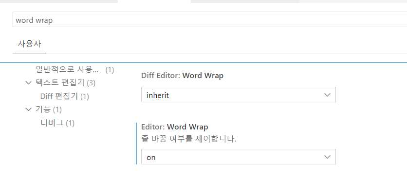 VS Code에서 자동 줄바꿈 설정을 키는 방법