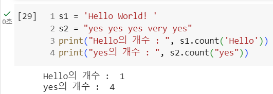 사용방법: 변수명.count("찾고자 하는 문자열")