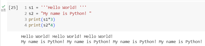 덧셈은 문자열을 이어서 출력하고, 곱셈은 곱한 수 만큼 출력해준다.