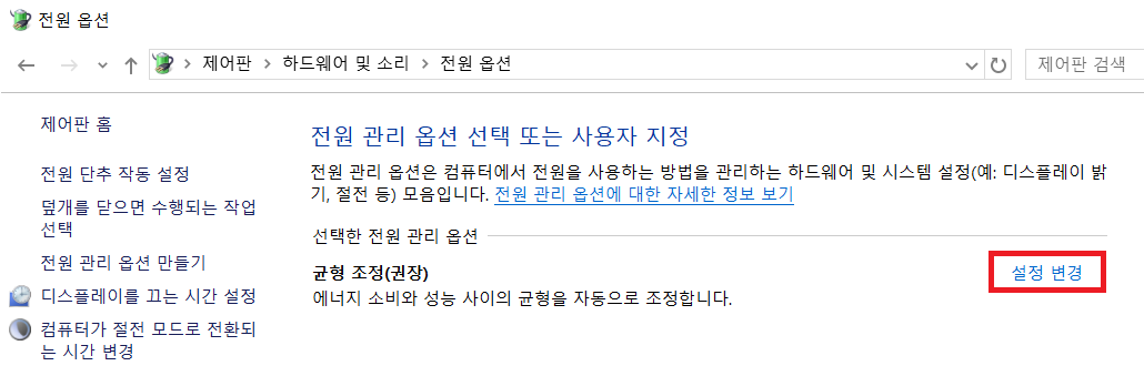 [고급 전원 관리 옵션 설정 변경] 클릭