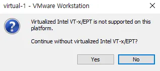 VMware를 키니 곧바로 다음 오류를 만났다.