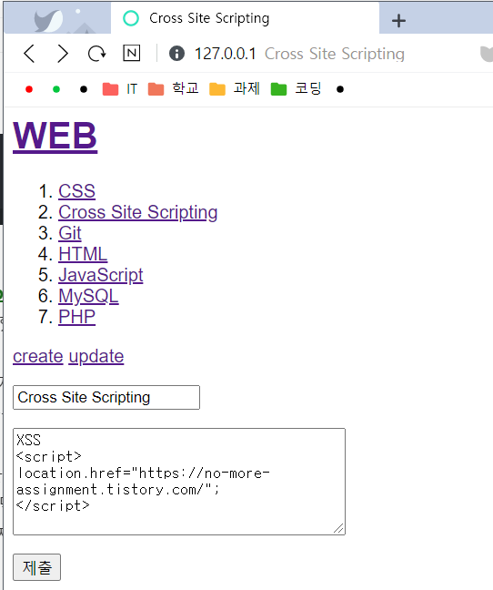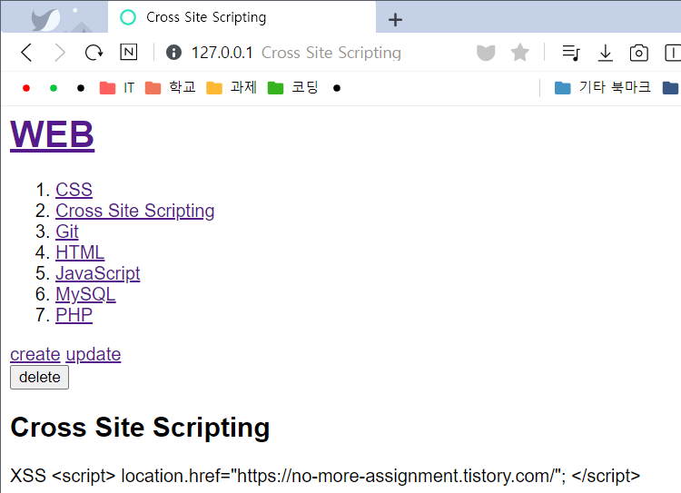 위 링크에는 지난번에 XSS에 대해 공부했던 포스팅을 걸어두었다.