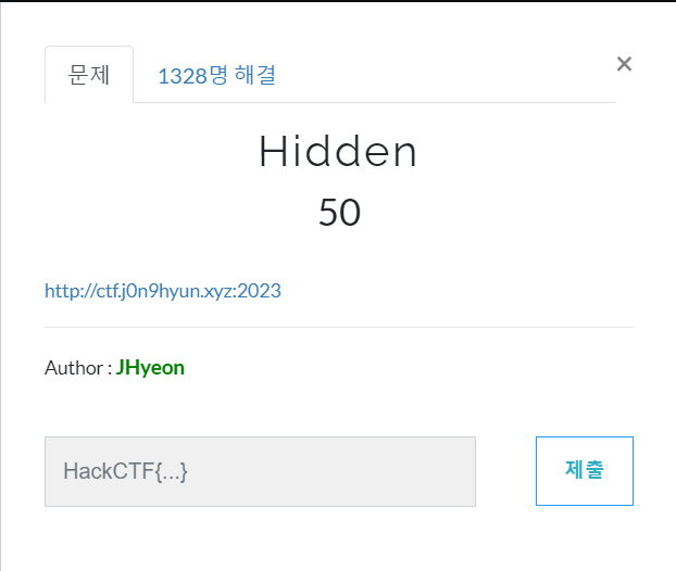 [HackCTF] Web - Hidden http://ctf.j0n9hyun.xyz:2023/ 이번에는 5번 파일을 찾으라고 직설적으로 나와있어서 편했다. 각 번호를 눌러보면위와 같이 알림창이 뜨고, 주소창을 보면 /?id=1로 바뀌는 것을 볼 수 있다. 나머지 파일도 같은 형식으로 바뀌므로, /?id=5를 입력하면 flag를 알 수 있을 것이다. CTF/HackCTF 2021.07.16