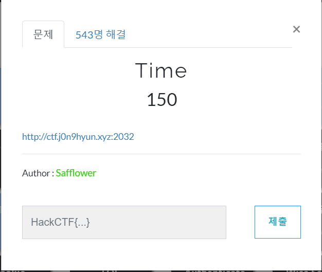 [HackCTF] Web - Time 소스코드를 분석해보자.is_numeric 함수를 사용해 숫자인지 검증하고, 5,184,000 이상 7,776,000 이하의 값을 입력하면그 시간만큼 기다려서 flag를 출력해준다. is_numeric 함수는 지수표현도 가능하기 때문에 소숫점을 이용하면 else의 int부분에서 소수 이하부분이 날라갈 것이다. 5184000 → 0.5184e7 그럼 플래그를 얻을 수 있다. CTF/HackCTF 2021.08.12